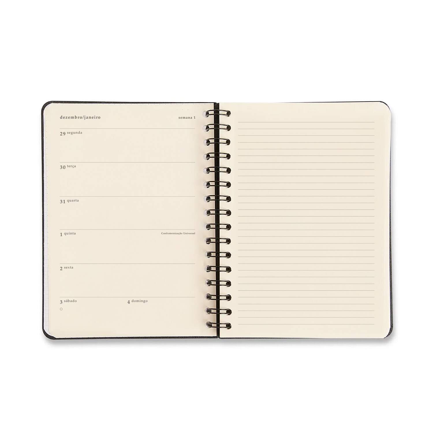 Agenda Planner Wire-o 2026 Doce Florada Semanal Anotações A5 Preto Agenda Planner Wire-o 2026 Doce Florada Semanal Anotações A5 Preto Referência: 00051838 Modelo/Marca: Cícero R$ 109,90 R$ 104,41 à vista ou em até 1x de R$ 109,90 no cartão Comprar Esse produto encontra-se indisponível. Deixe seu contato que avisaremos quando chegar. Seu nome: Seu e-mail: Desejo receber e-mails com lançamentos e promoções. Avise-me quando disponível R$ 104,41 à vista com 5% de desconto Boleto Bancário R$ 104,41 à vista com 5% de desconto Parcelas 1x de R$ 109,90 sem juros Indicar este produto Deixar comentário Marca: CiceroNome do produto: Agenda Planner Wire-o 2026 Doce Florada Semanal Anotações A5 PretoReferência: (Não informado oficialmente; pode variar conforme o revendedor)Formato: A5 (14 cm x 21 cm)Dimensões: 14,0 cm x 21,0 cmMaterial: Capa dura preta com estampa floral ¿¿¿Doce Florada¿¿¿, acabamento fosco, miolo em papel offset 80g/m²Cor predominante: Preto com detalhes florais coloridosCompartimentos:Encadernação Wire-o (espiral duplo metálico)Planejamento semanal (7 dias distribuídos em duas páginas)Páginas extras para anotações e listasEspaço para metas e organização pessoalElástico para fechamentoMarcador de página em fitaDestaques:Estampa floral delicada sobre fundo preto eleganteLayout semanal com espaço extra para anotações detalhadasPapel certificado FSC, garantindo qualidade e sustentabilidadeCapa resistente para uso prolongadoIdeal para organização pessoal, acadêmica ou profissional