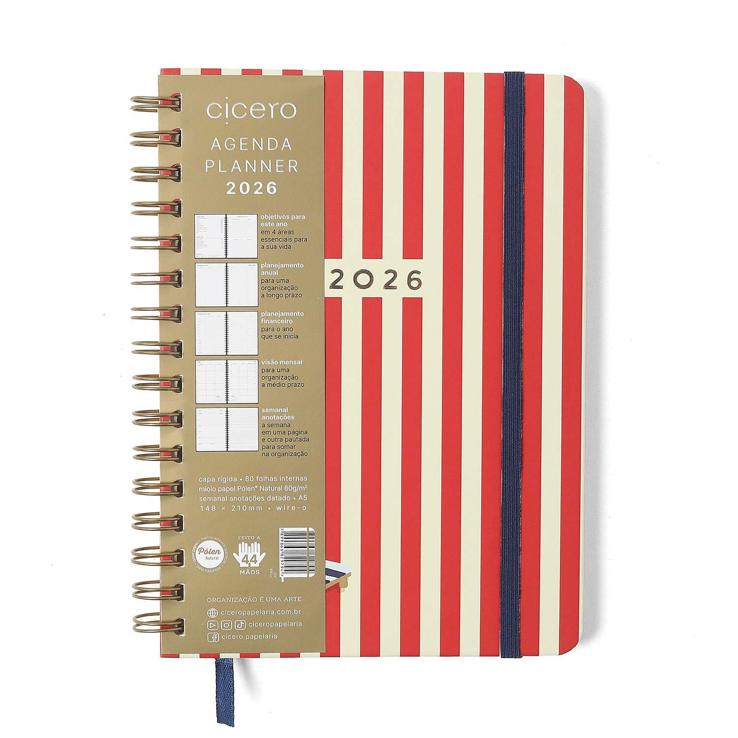 Agenda Planner Wire-o 2026 Praia Semanal Anotações A5 Sol Agenda Planner Wire-o 2026 Praia Semanal Anotações A5 Sol Referência: 00051860 Modelo/Marca: Cícero R$ 109,00 ou em até 1x de R$ 109,00 no cartão ou R$ 103,55 à vista com 5% de desconto COMPRAR Esse produto encontra-se indisponível. Deixe seu contato que avisaremos quando chegar. Seu nome: Seu e-mail: Desejo receber e-mails com lançamentos e promoções. Avise-me quando disponível Confira formas de pagamento X R$ 103,55 à vista com 5% de desconto Boleto Bancário R$ 103,55 à vista com 5% de desconto Parcelas 1x de R$ 109,00 Marca: CiceroNome do produto: Agenda Planner Wire-o 2026 Praia Semanal Anotações A5 SolReferência: (Não informado oficialmente; pode variar conforme o revendedor)Formato: A5 (14 cm x 21 cm)Dimensões: 14,0 cm x 21,0 cmMaterial: Capa dura com acabamento fosco, estampa temática Praia em tom amarelo "Sol", miolo em papel offset 80g/m²Cor predominante: Amarelo vibrante ("Sol")Compartimentos:Encadernação Wire-o (espiral duplo metálico)Planejamento semanal (7 dias distribuídos em duas páginas)Páginas extras para anotações e listasEspaço para metas e organização pessoalElástico para fechamentoMarcador de página em fitaDestaques:Estampa alegre e vibrante com tema praiaLayout semanal com espaço extra para anotações detalhadasPapel certificado FSC, garantindo qualidade e sustentabilidadeCapa resistente para uso prolongadoIdeal para organização pessoal, acadêmica ou profissional