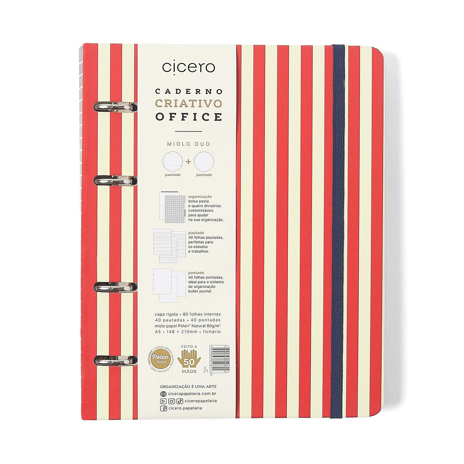 Caderno Argolado Cícero Office Duo Praia Pautado & Pontado A5 Sol Caderno Argolado Cícero Office Duo Praia Pautado & Pontado A5 Sol Referência: 00052197 Modelo/Marca: Cícero R$ 149,00 R$ 141,55 à vista ou em até 1x de R$ 149,00 no cartão Comprar Esse produto encontra-se indisponível. Deixe seu contato que avisaremos quando chegar. Seu nome: Seu e-mail: Desejo receber e-mails com lançamentos e promoções. Avise-me quando disponível R$ 141,55 à vista com 5% de desconto Boleto Bancário R$ 141,55 à vista com 5% de desconto Parcelas 1x de R$ 149,00 sem juros Indicar este produto Deixar comentário O Caderno Criativo Argolado Office Duo (folhas Pautadas e Pontadas) com miolo no formato A5 é um fichário ideal para os seus projetos, podendo ajudar na sua rotina profissional e pessoal, além de ser um bom aliado para guardar as suas receitas. O miolo duo permite trabalhar os dois lados do cérebro, com folhas pautadas para anotações e folhas lisas para desenho, livre escrita e listas de checagens.Está aqui o produto ideal para a sua rotina:¿¿¿ 40 folhas pautadas e 40 folhas pontadas em Papel Pólen®Natural 80 g/m² para serem organizadas em 4 divisórias¿¿¿ bolsa pasta com compartimento frente e verso para abrigar documentos, fichas, recortesEste ícone da organização e de sucesso da Cicero tem capa dura com cantos arredondados, elástico para fechamento e ferragem prata com 4 furos. Confira todos os refis disponíveis para somar na sua organização, cada um com um uso específico: folhas quadriculadas, pontadas, pautadas e sem pauta.