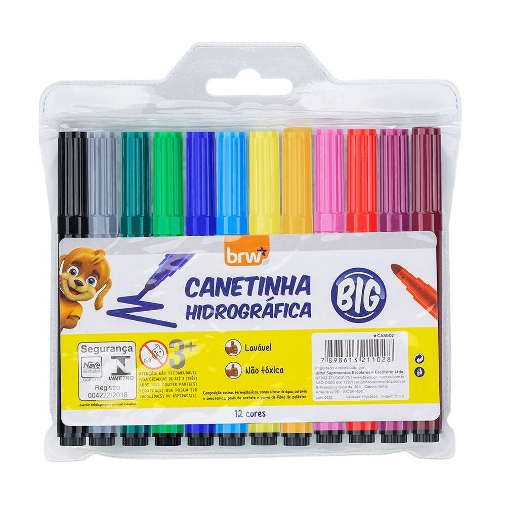 Canetinha Hidrocor BRW Big 12 Cores Canetinha Hidrocor BRW Big 12 Cores Referência: 00052667 Modelo/Marca: BRW R$ 14,90 R$ 14,16 à vista ou em até 1x de R$ 14,90 no cartão Comprar Esse produto encontra-se indisponível. Deixe seu contato que avisaremos quando chegar. Seu nome: Seu e-mail: Desejo receber e-mails com lançamentos e promoções. Avise-me quando disponível R$ 14,16 à vista com 5% de desconto Boleto Bancário R$ 14,16 à vista com 5% de desconto Parcelas 1x de R$ 14,90 sem juros Indicar este produto Deixar comentário Canetinha Hidrocor BRW Big 12 CoresPonta de fibra de poliéster 2 mm redonda. Kit econômico com cores chamativas. Corpo redondo e ergonômico, ideal para as mãos das crianças. O tamanho Big é ideal para crianças em fase de alfabetização, excelente para fazer traços grossos e grandes preenchimentos.SKU - 00052667Ref. Fabricante - CA8002Inmetro - 004222/2018EAN / GTIN - 7898613211028