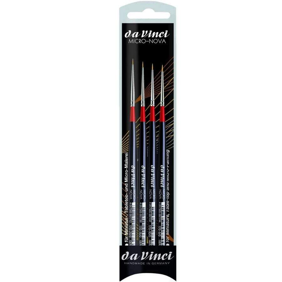 Kit Pincel Da Vinci Micro Nova 4270 4 Pçs Referência: 00041625 Modelo/Marca: Da Vinci R$ 340,00 R$ 323,00 à vista ou até 2x sem juros de R$ 170,00 ou em até 3x de R$ 120,20 no cartão Comprar Esse produto encontra-se indisponível. Deixe seu contato que avisaremos quando chegar. Seu nome: Seu e-mail: Desejo receber e-mails com lançamentos e promoções. Avise-me quando disponível R$ 323,00 à vista com 5% de desconto Boleto Bancário R$ 323,00 à vista com 5% de desconto Parcelas 1x de R$ 340,00 sem juros 2x de R$ 170,00 sem juros 3x de R$ 120,20 Indicar este produto Deixar comentário Kit Pincel Da Vinci Micro Nova 42704 PçsA família da Vinci nova é composta por pincéis de fibras sintéticas para todas as técnicas de pinturas e em diferentes formatos. Essa linha de pincéis é o best-seller da Vinci há decadas. Os formatos indicados para pintura a óleo possuem uma surpreendente elasticidade. A durabilidade destes pincéis ultrapassa a dos pincéis de pêlo consideravelmente, especialmente ao trabalhar em superfícies rugosas. Os pincéis nova para pintura a óleo são amplamente preferidos para pintura acrílica uma vez que as tintas acrílicas são normalmente utilizadas em consistências mais líquidas do que as tintas a óleo.A linha MICRO-NOVA possui cabos curtos e hexagonais para maior firmeza nos trabalhos de detalhes e traços finos, e para evitar que rolem nas superfícies de trabalho. Kit composto por 4 pincéis para miniaturas, detalhes e micro pinturas.Numeração dos pincéis deste Kit:20/0,15/0,10/0 e5/0.Características- Fibras sintéticas de diferentes diâmetros asseguram uma alta capacidade de absorção da tinta para pinceladas precisas e uniformes- Fibras elásticas de alta qualidade que mantém seu formato mesmo após muito uso. Fácil de limpar- Qualidade muito semelhante à do pêlo natural de esquilo- Formatos desenvolvidos de forma que cada um garanta excelência e precisão na pincelada- Ferrolho metálico inoxidável sem emendas e de alta durabilidade- Sem perda de fibras- Produto Vegano- Descrições Técnicas:- Técnica de Pintura: Acrílica/ Aquarela/ Guache/ Óleo- Superfície de Pintura: Cerâmica Vidro/ Pele/ Cerâmica/ Tela/ Metal/ Papel/ Cartão/ Porcelana/ Pedra- Aplicação: Pintura Corporal/ Pintura Facial/ Modelagem- Pelo/ Fibras: Fibras sintéticas- Ferrolho: Ferrolho prateado- Cabo: Curto hexagonal de madeira- Comprimento do Cabo: CurtoSKU - 00041625Ref. Fabricante - 4270Inmetro - Uso Profissional/ArtísticoEAN/ GTIN - 4017505985974