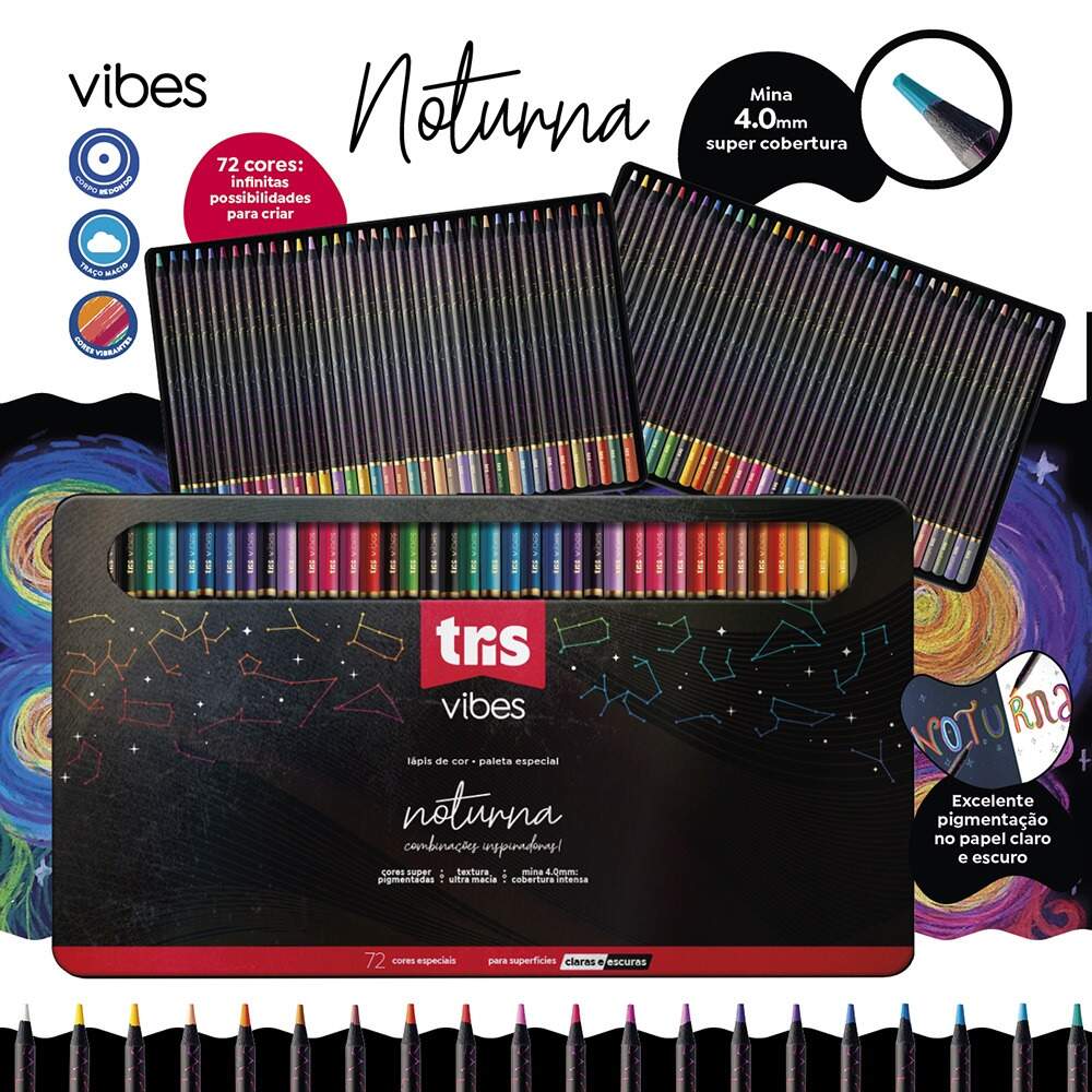 Lapis de Cor Tris Vibes Noturna 72 Cores Est Lata Lapis de Cor Tris Vibes Noturna 72 Cores Est Lata Referência: 00051526 Modelo/Marca: Tris R$ 279,00 ou 2x de R$ 139,50 sem juros ou R$ 265,05 à vista com 5% de desconto COMPRAR Esse produto encontra-se indisponível. Deixe seu contato que avisaremos quando chegar. Seu nome: Seu e-mail: Desejo receber e-mails com lançamentos e promoções. Avise-me quando disponível Confira formas de pagamento X R$ 265,05 à vista com 5% de desconto Boleto Bancário R$ 265,05 à vista com 5% de desconto Parcelas 1x de R$ 279,00 2x de R$ 139,50 Marca: TrisNome do produto: Lápis de Cor Vibes Noturna 72 Cores ¿¿¿ Estojo de LataReferência: (não especificada)Formato: Estojo metálico com 72 lápis de corDimensões: Aproximadamente 17 cm (comprimento de cada lápis)Material: Madeira com pigmentos atóxicosCor predominante: Sortidas (72 cores variadas)Compartimentos: Estojo metálico com 72 unidadesDestaques:Grande variedade de cores para artes detalhadas e profissionaisMinas resistentes, macias e fáceis de apontarProduto atóxico, certificado para uso escolar e artísticoEstojo metálico resistente, ideal para organização e transporte seguroProduto ideal para artistas, estudantes e entusiastas da arteSKU - 00051526Ref. Fabricante - 911520Inmetro - 001 964/2018EAN / GTIN - 7908673911520