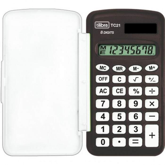 Tilibra - Calculadora Tilibra TC21 Preta Calculadora Tilibra TC21 Preta Referência: 00050765 Modelo/Marca: Tilibra R$ 36,90 R$ 35,06 à vista ou em até 1x de R$ 36,90 no cartão Comprar Esse produto encontra-se indisponível. Deixe seu contato que avisaremos quando chegar. Seu nome: Seu e-mail: Desejo receber e-mails com lançamentos e promoções. Avise-me quando disponível R$ 35,06 à vista com 5% de desconto Boleto Bancário R$ 35,06 à vista com 5% de desconto Parcelas 1x de R$ 36,90 sem juros Indicar este produto Deixar comentário A Calculadora de Bolso TC21 é uma ferramenta para atender às necessidades de estudantes e profissionais. A TC21 é capaz de realizar cálculos matemáticos básicos, raiz quadrada e tem função de alterar o sinal do número exibido, com rapidez e agilidade.O produto, com capa protetora, tem formato compacto de 105x55mm, fonte de energia dual, ou seja, pode ser carregada por bateria ou luz solar.DetalhesEstampasDimensões e pesoFonte de energia: DualFormato: 105mm x 55mmOperações: Cálculos básicosDígitos: 8Modelo: BolsoResistenteAlta qualidadeCapa protetoraLeve e portátilTeclas plásticas